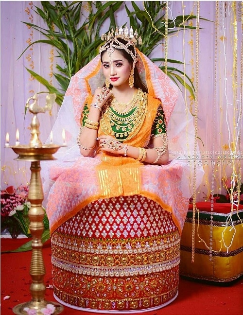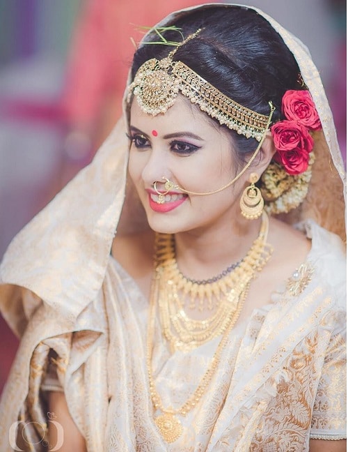 Assam wedding dress style little close to Bengal wedding attire. going towards the northeast area you will see they follow the more or less same wedding rituals. Here also the wedding dress has a white color combination. if you want to match.