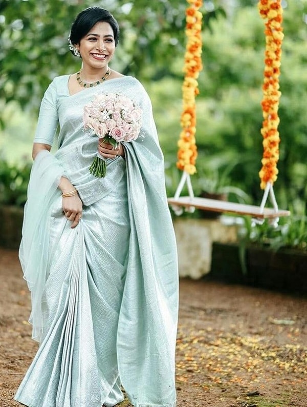 Who could forget the beautiful look of our favorite Alia Bhatt in two states climax scene? It was the Kanchipuram silk sari with the combination of the wreath that won the heart of the audience. As a couple, it will be defiantly the perfect choice for you but don’t forget to read about vesathi or dhoti that is the groom’s wedding outfit in a Tamilnadu wedding.