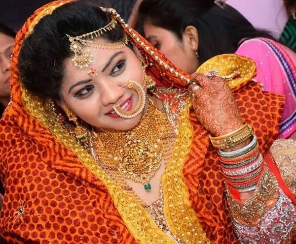 The perfect example of traditional marriage is a white sari with a golden border called’ kevasu’ for the brides. And dhoti for the groom has a perfect matching for the Indian married couple.